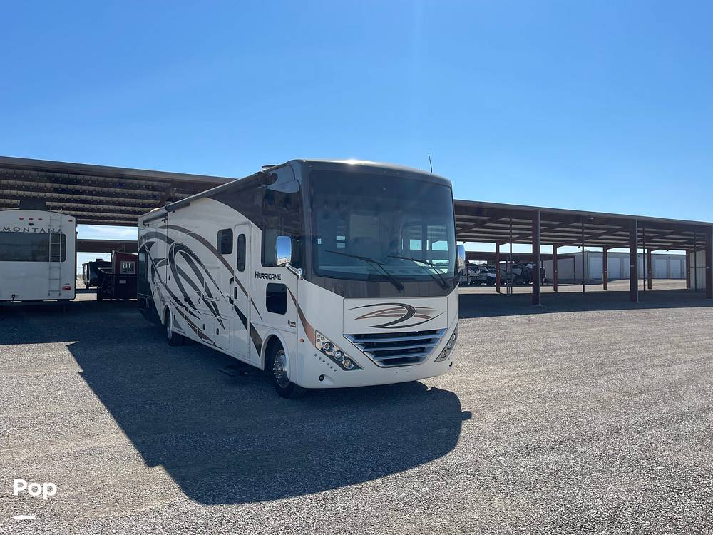 Looking for the perfect home on wheels for your next adventure? Check out this 2019 Thor Motor Coach Hurricane 35M Class A RV! With a spacious interior and the ability to sleep up to 8 people, this RV is perfect for family trips, weekend getaways, or even full-time living. Measuring 31 feet in length, it offers plenty of room for everyone to stretch out and relax.