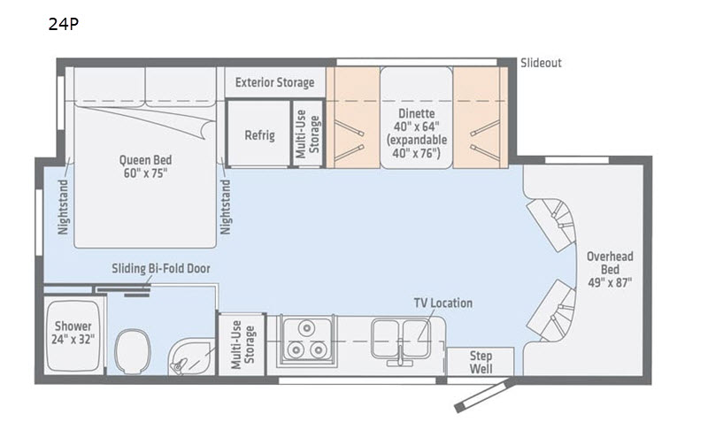 The Winnebago Vita 24P is designed to accommodate up to five people, making it an ideal choice for family trips or outings with friends. Its intelligently designed layout maximizes space and comfort, ensuring a pleasant experience for all occupants. The motorhome features a fuel capacity of 100 liters, providing ample range for extended journeys without frequent refueling stops. Measuring 20 feet in length, the Vita 24P is compact enough for easy maneuverability while still offering all the amenities needed for a comfortable stay.