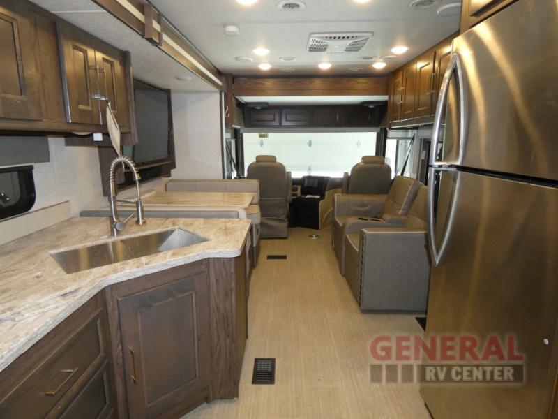 Step inside and be amazed by the roomy interior, thanks to its two slide-outs that provide ample living space. This RV comfortably sleeps up to eight people, making it perfect for family vacations or road trips with friends. The thoughtfully designed layout ensures everyone has their own space to relax and unwind after a day of adventure. Whether you're cooking up a storm in the fully equipped kitchen or lounging in the cozy living area, you'll feel right at home.
