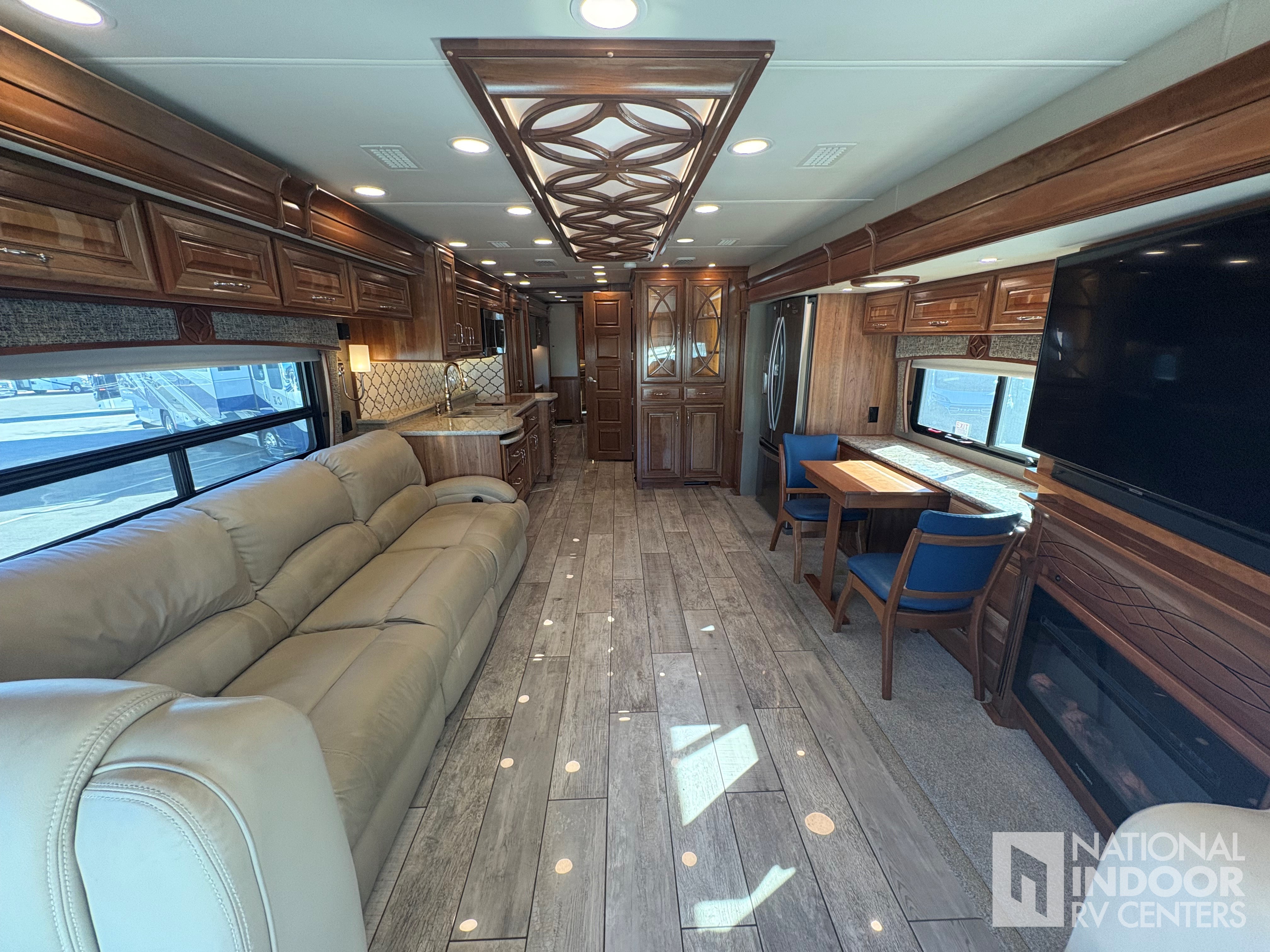 Measuring an impressive 38 feet in length, this RV offers ample space for relaxation and entertainment. The four slide-outs expand your living area, providing a spacious interior that feels like a home away from home. Whether you're hosting friends or enjoying a quiet evening, the elegant living space, complete with premium furnishings and state-of-the-art amenities, caters to your every need. The gourmet kitchen, equipped with top-of-the-line appliances, allows you to prepare meals with ease, while the luxurious master suite offers a serene retreat after a day of exploration.