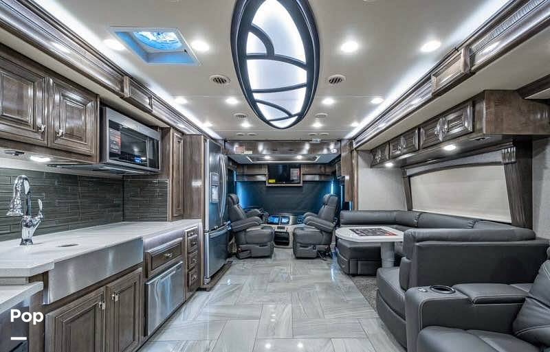 Inside, the Fleetwood Discovery LXE 40G comfortably sleeps up to six people, making it ideal for family vacations or trips with friends. The well-appointed living area features plush seating and a state-of-the-art entertainment system, creating a cozy environment for unwinding after a day of exploration. The fully equipped kitchen boasts modern appliances and ample storage, allowing you to prepare delicious meals with ease. The elegant bathroom and private sleeping quarters ensure everyone has their own space to relax and recharge.