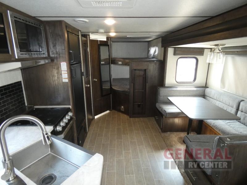This travel trailer features one slide-out, enhancing the living area to ensure you have plenty of room to relax and entertain. It can comfortably sleep up to 10 people, thanks to its smart layout that includes a private master bedroom, double bunk beds, and convertible sleeping areas. Whether you're planning a weekend getaway or an extended road trip, this RV is equipped to meet your needs.