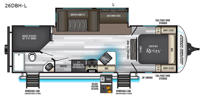 Discover the perfect travel companion with the 2020 Forest River RV Cherokee Alpha Wolf 26DBH-L Travel Trailer. This meticulously designed RV offers a spacious and comfortable retreat for your adventures. With a length of 26 feet, it provides ample space for family and friends, making it an ideal choice for those who love to explore without sacrificing comfort.