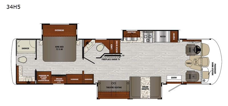 Fueling your adventures is a breeze with a generous fuel capacity of 303 liters, ensuring you can travel further without frequent stops. This RV is not just about getting from point A to point B; it's about enjoying the journey in comfort and style. Whether you're exploring national parks or cruising along scenic highways, the Georgetown 5 Series 34H5 is your ticket to unforgettable experiences. Don't miss the opportunity to own this fantastic RV and start making memories on the road today!