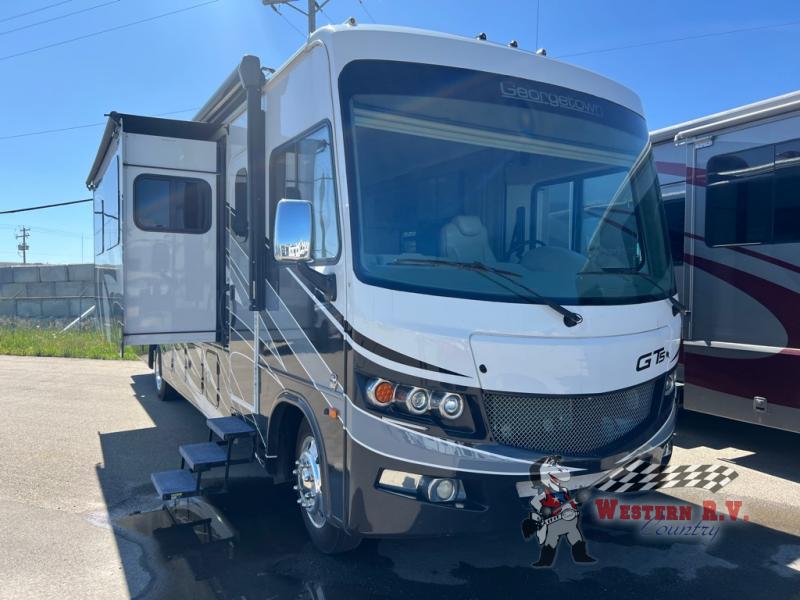Discover the open road in style with the 2020 Forest River RV Georgetown 5 Series 34H5 Class A motorhome. This exceptional RV is designed for those who crave adventure without sacrificing comfort. With three spacious slide-outs, this motorhome offers ample living space, making it perfect for long journeys or weekend getaways. Measuring 34 feet in length, it provides a perfect balance of maneuverability and roominess, ensuring you have all the space you need to relax and enjoy your travels.