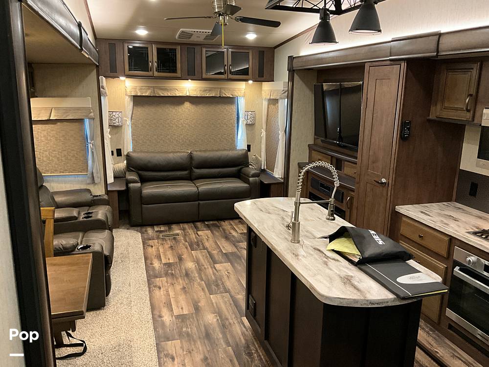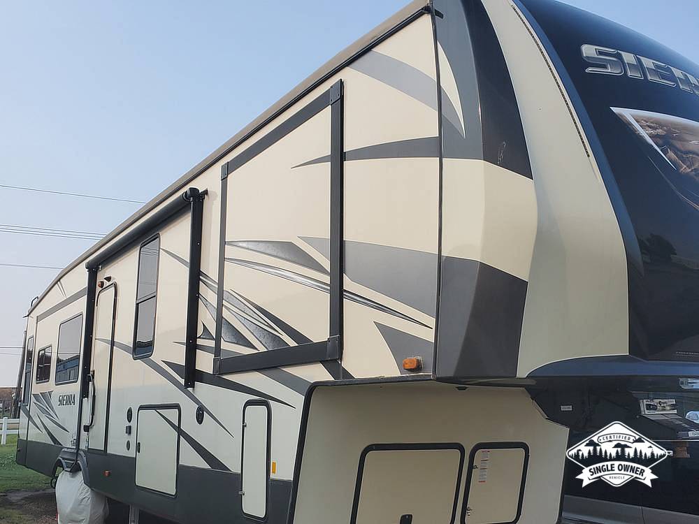 Introducing the 2020 Forest River Sierra 368FBDS Fifth Wheel, a luxurious and spacious mobile retreat designed for those who seek comfort and style on the road. This meticulously crafted RV offers an exceptional blend of functionality and elegance, making it an ideal choice for both short getaways and extended adventures. With a length of 34 feet, this fifth wheel provides ample space for relaxation and entertainment, ensuring that your travels are as enjoyable as they are memorable.