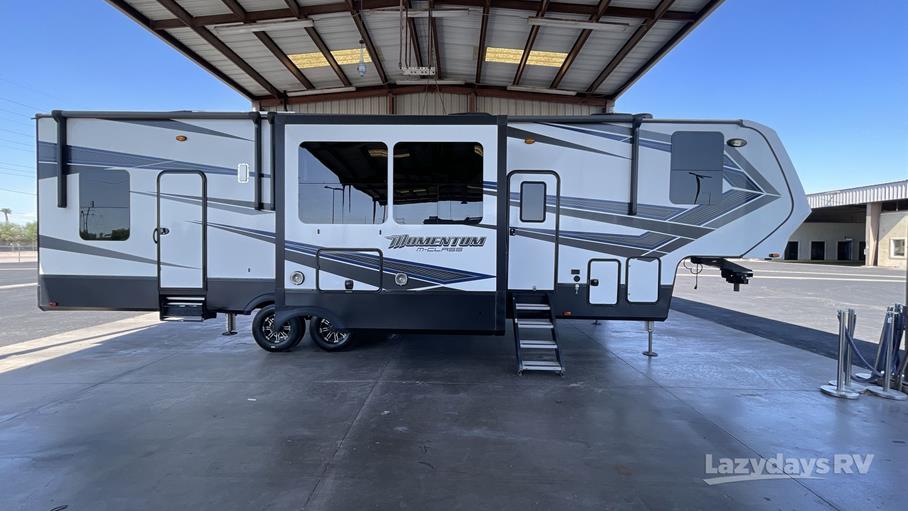 Measuring a generous 33 feet in length, the Momentum 349M offers plenty of space for the whole family. Inside, you'll find a cozy living area that's perfect for kicking back and enjoying some downtime. The kitchen is fully equipped, making it easy to whip up your favorite meals on the road. And with a luxurious master suite, you’ll sleep like a baby no matter where you park for the night.