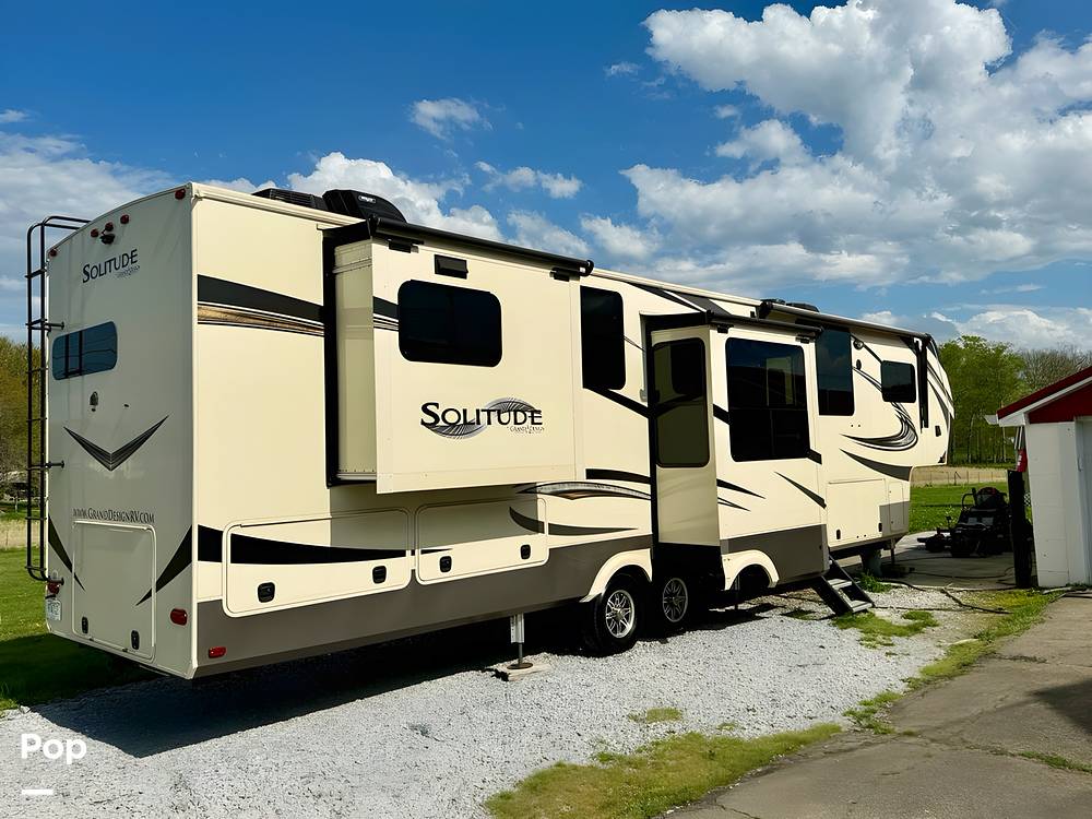 Introducing the 2020 Grand Design Solitude 390RK Fifth Wheel, a luxurious and spacious mobile retreat designed for those who seek comfort and elegance on the road. This exceptional RV, measuring an impressive 34 feet in length, offers a perfect blend of style, functionality, and modern amenities, making it an ideal choice for families or groups of up to six people. Its sophisticated design and high-quality craftsmanship ensure a premium travel experience, whether you're embarking on a weekend getaway or an extended adventure.