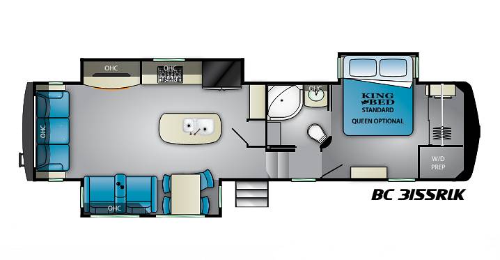 Inside, the Heartland Big Country 3155RLK comfortably sleeps up to four people, making it perfect for couples or small families. The well-appointed living area features plush seating and a state-of-the-art entertainment system, ensuring relaxation and enjoyment during your travels. The kitchen is equipped with modern appliances, including a full-sized refrigerator, stove, and microwave, allowing you to prepare meals with ease. The dining area is both functional and stylish, providing a cozy space to enjoy your culinary creations.