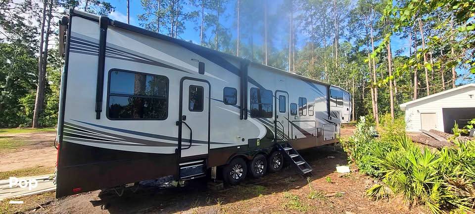 Outside, the Heartland Cyclone 4007 continues to impress with its robust construction and stylish design. The exterior features multiple storage compartments, perfect for all your travel gear. With its advanced suspension system and durable build, this fifth wheel is ready to tackle any terrain. Whether you're heading to the mountains or the beach, the Cyclone 4007 HD Edition is your ticket to unforgettable adventures. Don't miss the opportunity to own this exceptional RV and make every journey a memorable one.
