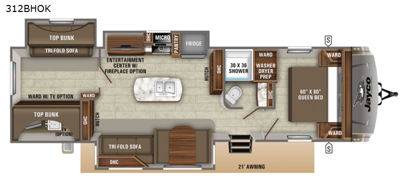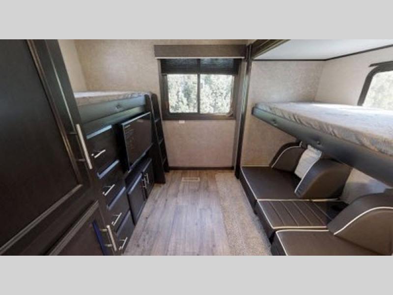 The Jayco Eagle HT 312BHOK features three expansive slide-outs, significantly enhancing the living space and providing a roomy, open interior. This model is thoughtfully designed to accommodate up to eight people comfortably, making it ideal for family vacations or group excursions. The interior layout is both practical and luxurious, featuring a well-appointed kitchen, a cozy living area, and ample sleeping arrangements. The master bedroom offers a private sanctuary, while the bunkhouse provides additional sleeping quarters, ensuring everyone has their own space to relax.
