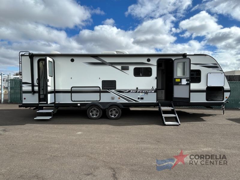 Discover the perfect blend of comfort and adventure with the 2020 Jayco Jay Feather 27BHB Travel Trailer. This meticulously designed RV is your ticket to unforgettable family vacations and spontaneous getaways. With a spacious interior that extends with one slide-out, this travel trailer offers ample room for everyone to relax and enjoy. Measuring approximately 27 feet in length, it provides a generous living space without compromising on maneuverability, making it ideal for both seasoned travelers and RV newcomers.