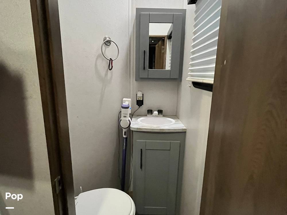Step inside and be greeted by a thoughtfully designed interior that combines comfort with functionality. The open living area features plush seating and a modern entertainment system, perfect for relaxing after a day of exploration. The fully equipped kitchen boasts high-end appliances and generous counter space, making meal preparation a breeze. With its elegant finishes and smart layout, this RV feels like a home away from home.