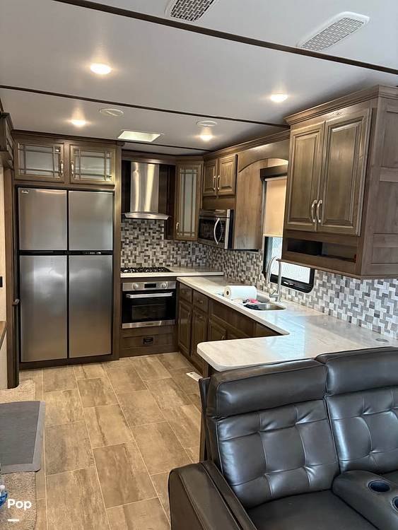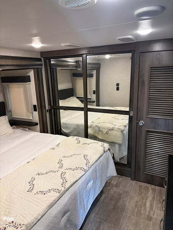 Measuring an impressive 31 feet in length, the Montana 37LK provides ample space for relaxation and entertainment. The thoughtfully designed layout includes a fully equipped kitchen, complete with modern appliances, making meal preparation a breeze. The cozy living area features plush seating and a state-of-the-art entertainment system, perfect for unwinding after a day of adventure. The elegant decor and high-quality finishes throughout the RV create a warm and inviting atmosphere that feels just like home.