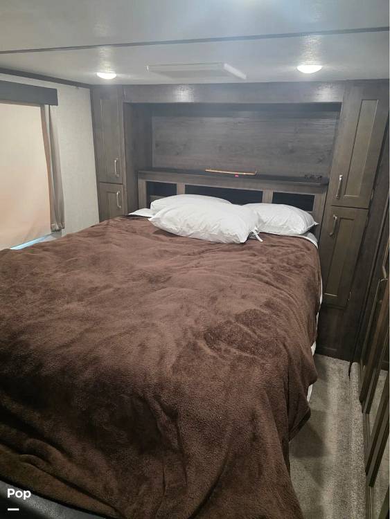 The interior of this fifth wheel is meticulously crafted to provide a home-like atmosphere. It features a spacious living area, complete with plush seating and modern amenities, ensuring that comfort is never compromised. The well-appointed kitchen is equipped with top-of-the-line appliances, allowing for effortless meal preparation. Additionally, the sleeping quarters are designed to offer restful nights, with high-quality bedding and thoughtful storage solutions. The Montana 383TH also boasts a sophisticated bathroom, providing all the conveniences of home while on the road.