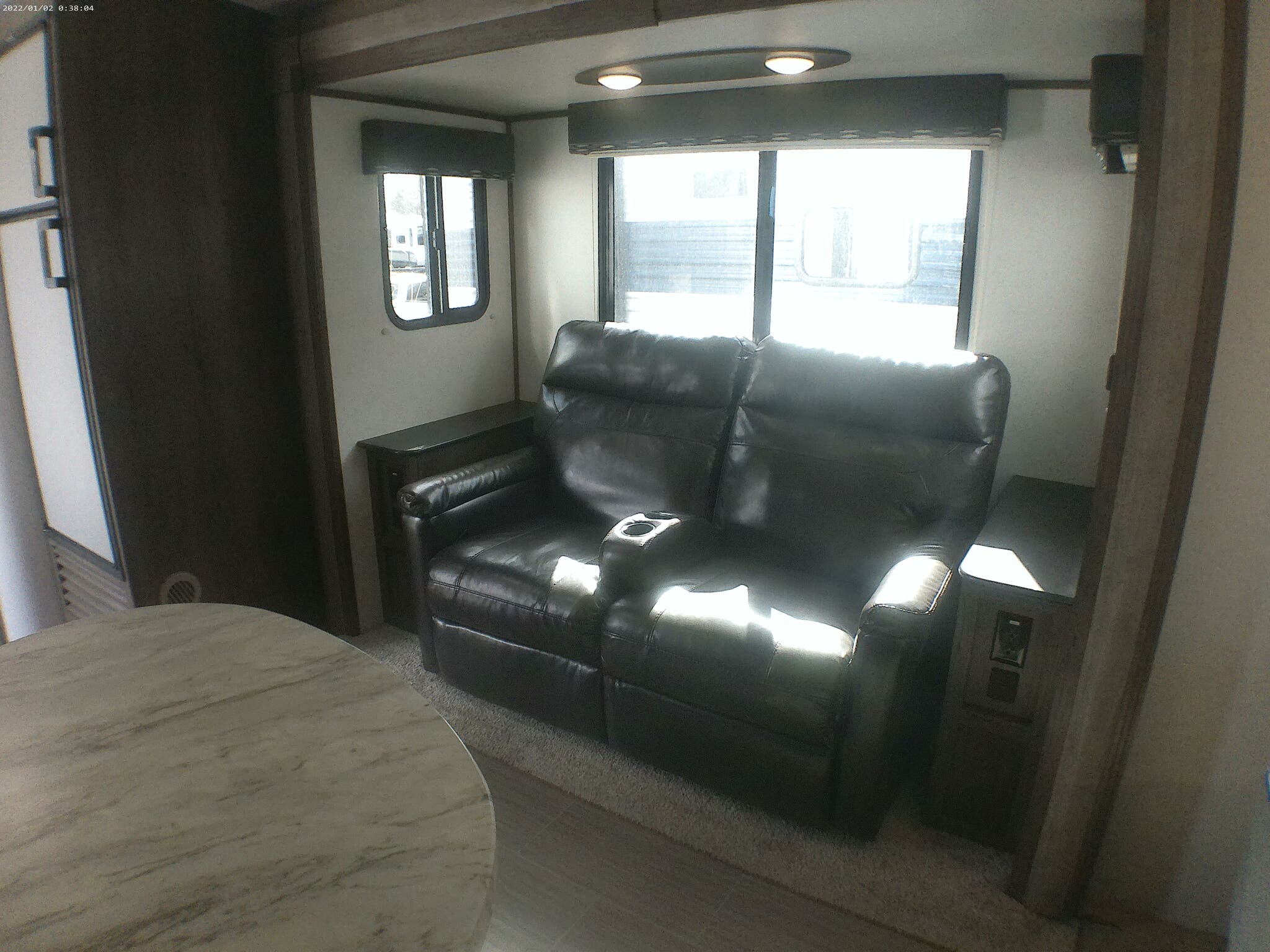 Step inside to find a thoughtfully designed interior that maximizes space and comfort. The front queen bed offers a restful sanctuary after a day of exploration, while the theater seating slide-out provides a perfect spot for relaxation and entertainment. The clever layout ensures that every inch is utilized efficiently, offering ample storage and modern amenities to enhance your travel experience. Whether you’re cooking a meal in the well-equipped kitchen or unwinding with a good book, this RV is your home away from home.