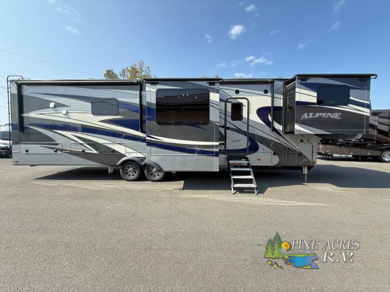 This Alpine model features an impressive five slide-outs, creating a roomy and inviting living space. Whether you're lounging with a book or entertaining friends, you'll appreciate the extra elbow room. The RV comfortably sleeps six, making it ideal for family trips or a getaway with friends. The master bedroom offers a cozy retreat, while the additional sleeping areas ensure everyone has a comfy spot to rest.