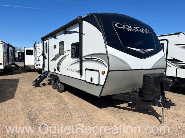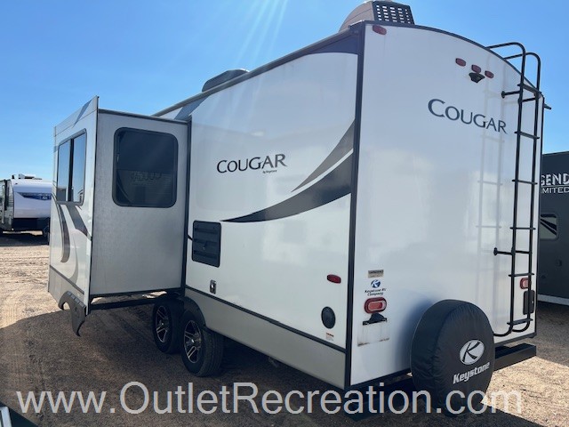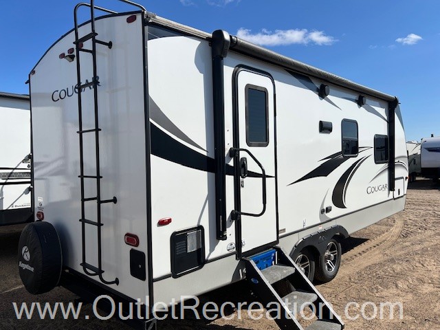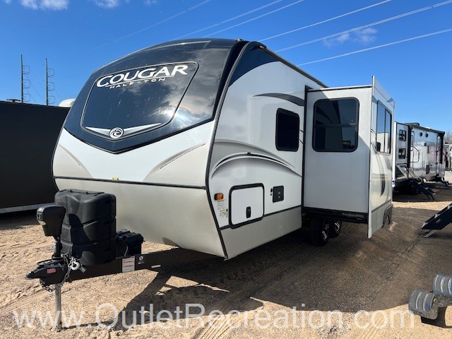 This Cougar model features one convenient slide-out, giving you extra room to relax and enjoy your travels. Inside, you'll find a cozy setup that comfortably sleeps two, making it perfect for couples or solo adventurers. The interior is thoughtfully designed with modern amenities and plenty of storage space, ensuring you have everything you need right at your fingertips. Whether you're cooking up a meal in the well-equipped kitchen or unwinding in the inviting living area, this RV has you covered.