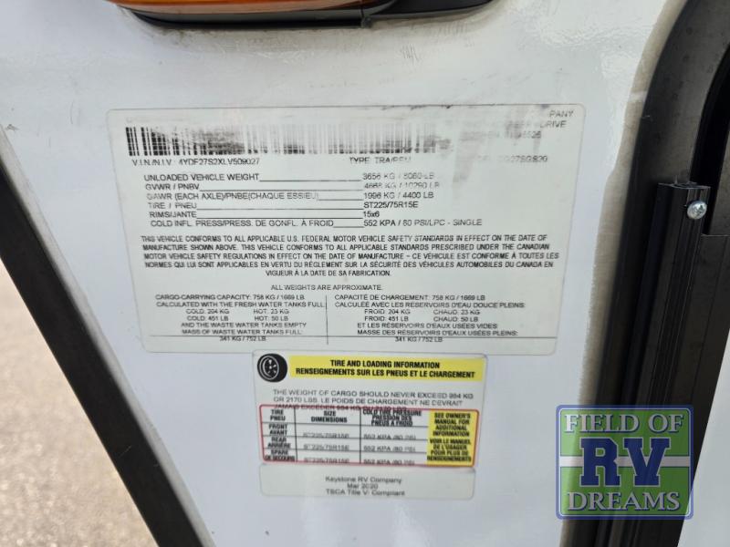 Weighing approximately 3,653 kilograms, this RV is engineered for efficiency without compromising on durability or performance. The Cougar Half-Ton series is renowned for its superior construction and attention to detail, offering peace of mind and reliability on every journey. Whether you are embarking on a weekend getaway or an extended road trip, the 2020 Keystone RV Cougar Half-Ton 27SGS Fifth Wheel promises an unparalleled travel experience, combining elegance and functionality in one exceptional package.