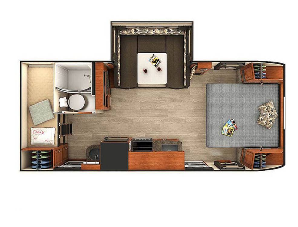 Inside, the Lance 2185 is thoughtfully designed to accommodate up to six people, ensuring ample space for everyone. The interior features a well-appointed kitchen equipped with modern appliances, allowing you to prepare meals with ease. The cozy dining area provides a comfortable space for family gatherings or quiet dinners. The sleeping arrangements include a master bedroom with a queen-sized bed, convertible sofa beds, and a bunk area, ensuring restful nights for all occupants. The bathroom is efficiently designed with a shower, sink, and toilet, providing all the essentials for a comfortable stay.