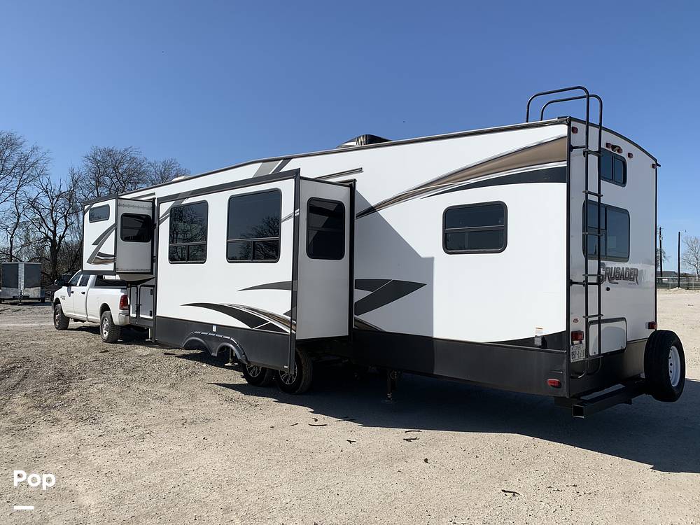 Measuring approximately 34 feet in length, the Crusader 395BHL offers ample space for all your needs. Inside, you'll find a well-appointed living area with modern amenities, including a fully equipped kitchen, cozy seating, and a dining area that invites you to share meals and create memories. The sleeping arrangements are versatile, featuring a master bedroom, bunkhouse, and convertible spaces to ensure everyone has a restful night's sleep.