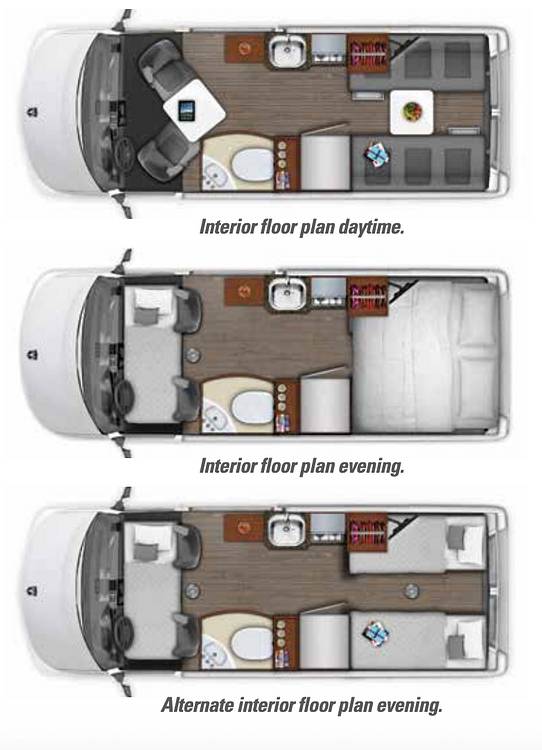 Inside, the Roadtrek Zion comfortably sleeps up to three people, making it perfect for small families or couples. The interior is thoughtfully designed to maximize space and functionality, featuring a well-equipped kitchenette with a refrigerator, microwave, and two-burner propane stove. The living area is both cozy and practical, with a convertible sofa that easily transforms into a comfortable sleeping area. Additionally, the RV is equipped with a compact bathroom, complete with a toilet, shower, and sink, ensuring you have all the conveniences of home while on the road.