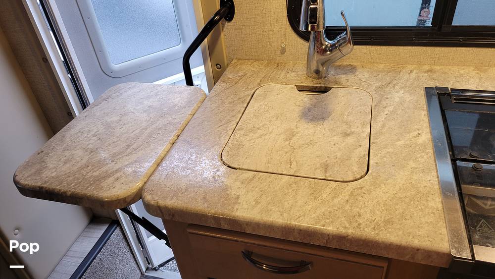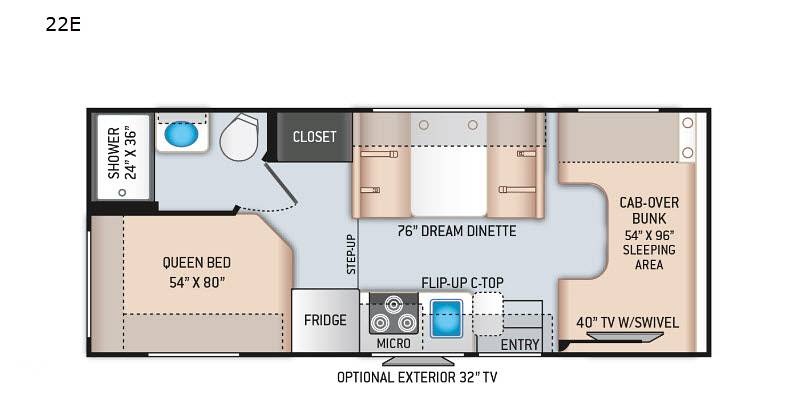 Inside, you'll find a cozy and versatile space that comfortably sleeps up to six people. The smart layout includes a queen-sized bed, a convertible dinette, and an over-cab bunk, ensuring everyone has a comfy spot to rest after a day of exploring. The kitchen is equipped with all the essentials, including a refrigerator, microwave, and a two-burner stove, so you can whip up your favorite meals on the go. Plus, the bathroom features a shower and toilet, providing all the comforts of home wherever you roam.