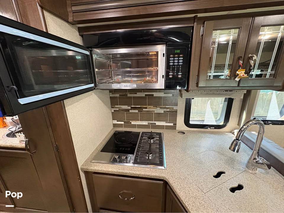 Step inside and be greeted by a welcoming interior that can comfortably sleep up to six people. The thoughtfully designed layout includes a cozy queen-sized bed, a convertible dinette, and a versatile sofa bed, ensuring everyone has a restful night's sleep. The fully equipped kitchen features a refrigerator, microwave, and stovetop, making it easy to whip up delicious meals on the go. Plus, the ample storage space means you can bring along all your travel essentials without a worry.