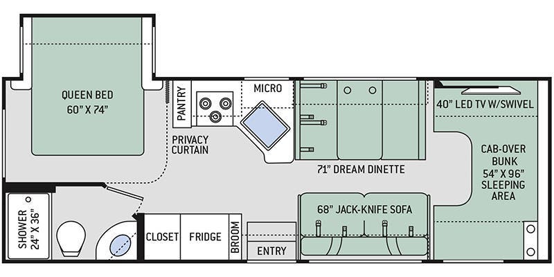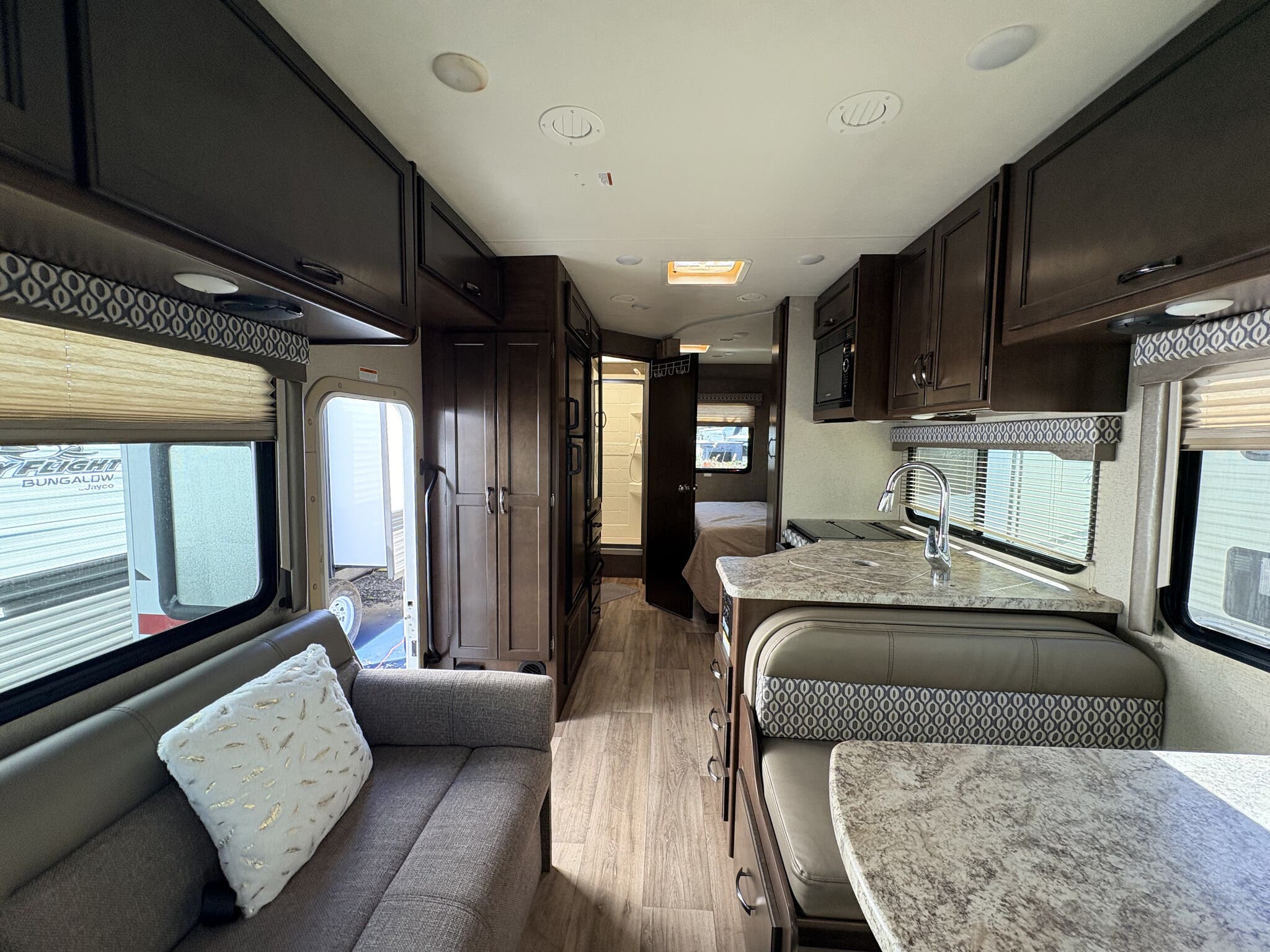 This motorhome features a single slide-out, ingeniously expanding the living space to provide a comfortable and inviting environment. With a length of 23 feet, the Freedom Elite 26HE offers a compact yet spacious interior, perfect for navigating both highways and scenic routes. The thoughtfully designed layout accommodates up to four sleepers, making it an excellent option for families or small groups seeking adventure without compromising on comfort.