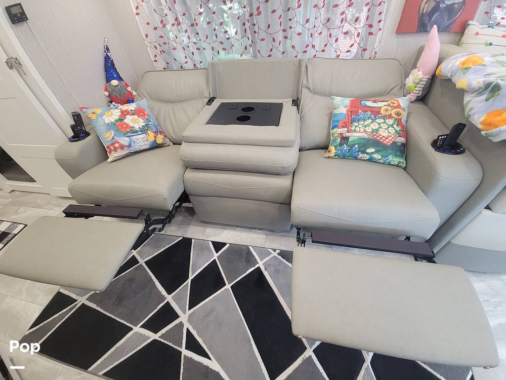 The Encore 375 RB is thoughtfully designed to accommodate up to nine sleepers, making it ideal for larger families or groups of friends. The interior boasts a sophisticated layout with premium furnishings and high-quality finishes, creating an inviting atmosphere for all occupants. The well-appointed kitchen features modern appliances and ample storage, allowing you to prepare meals with ease. The spacious living area is perfect for unwinding after a day of exploration, while the multiple sleeping arrangements ensure everyone has a comfortable place to rest.