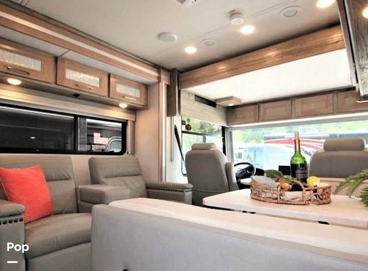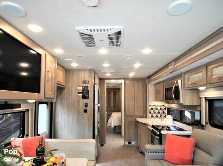 Inside, you'll find a thoughtfully designed living space that maximizes comfort and functionality. The RV features a fully equipped kitchen with modern appliances, allowing you to prepare meals with ease. The cozy sleeping arrangements include a master bedroom with a queen-sized bed, a convertible sofa bed, and a dinette that transforms into an additional sleeping area. The bathroom is fitted with high-quality fixtures, providing a refreshing and convenient space to unwind after a day of exploration.