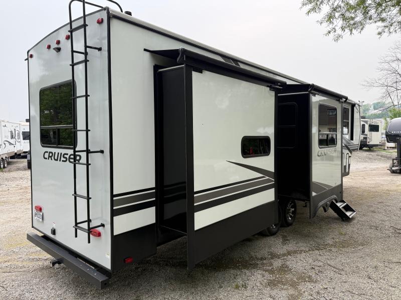 Introducing the 2021 Crossroads Cruiser 3601GK Fifth Wheel, a perfect blend of luxury and functionality for your next adventure. This stunning RV measures approximately 34 feet in length, offering ample space for comfort and convenience. Designed with the modern traveler in mind, the Cruiser 3601GK is equipped with top-of-the-line features that make it a home away from home.