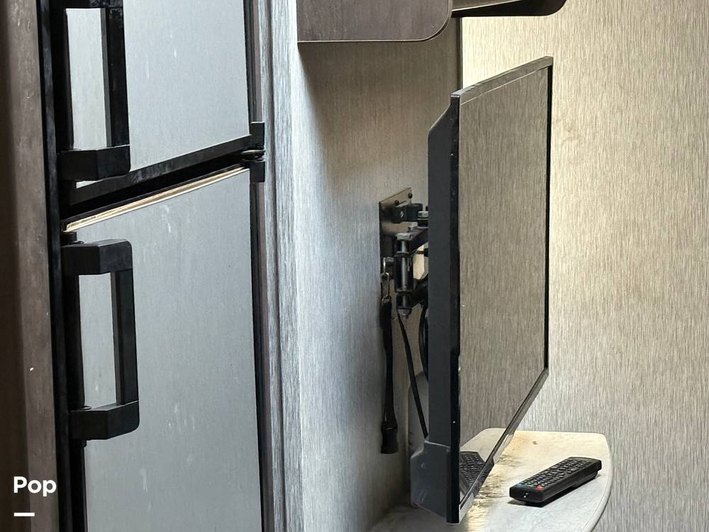 Step inside to find a thoughtfully designed interior that maximizes space and comfort. The Astoria features a master bedroom with a queen-sized bed, a cozy bunkhouse that sleeps four, and additional sleeping options in the convertible dinette and sofa. The fully equipped kitchen boasts a refrigerator, microwave, and three-burner stove, ensuring you can prepare delicious meals on the go. The spacious living area, complete with a flat-screen TV and entertainment center, provides the perfect setting for relaxation after a day of exploration.