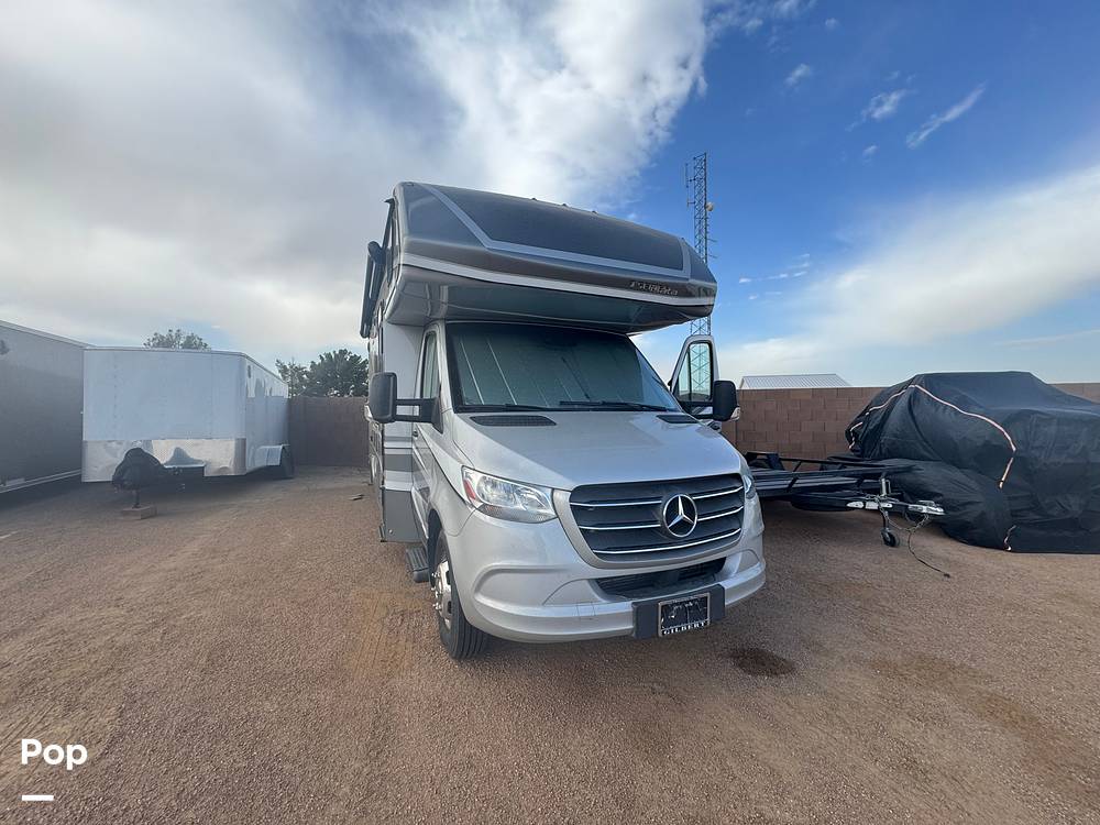 Step inside to discover a thoughtfully designed interior that seamlessly blends functionality with elegance. The living area is equipped with high-quality furnishings and state-of-the-art amenities, ensuring a comfortable and enjoyable journey. The kitchen is fully equipped with modern appliances, including a refrigerator, microwave, and stovetop, allowing you to prepare meals with ease. The sleeping arrangements are versatile, featuring a cozy queen-sized bed, convertible dinette, and an overhead bunk, ensuring restful nights for all travelers.