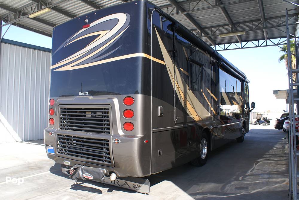Measuring 32 feet in length, the Reatta 37K offers a well-thought-out floor plan that maximizes space and functionality. The interior features high-quality finishes, including plush seating and a fully equipped kitchen with modern appliances. The sleeping arrangements are versatile, comfortably accommodating up to five people, ensuring everyone has a restful night's sleep after a day of exploration. The bathroom is designed with convenience in mind, offering a spacious shower and ample storage.