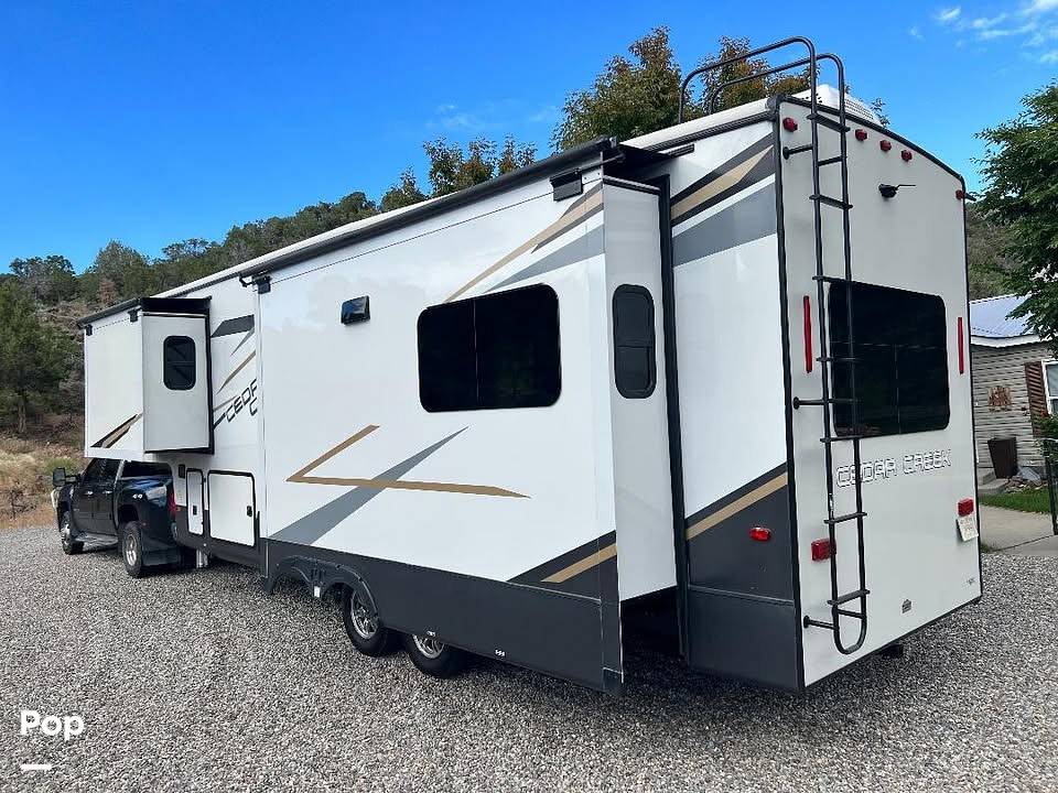 Introducing the 2021 Forest River Cedar Creek 291RW Fifth Wheel, a luxurious and spacious mobile retreat designed for those who seek comfort and convenience on the road. With an impressive length of 28 feet, this RV offers ample living space while maintaining a manageable size for easy towing and maneuverability. The Cedar Creek 291RW is meticulously crafted to provide a home-like atmosphere, ensuring that every journey is as comfortable as it is memorable.