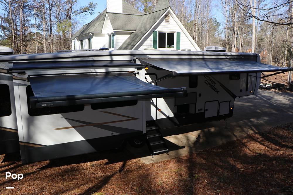 The kitchen is a chef's delight, featuring modern appliances, ample counter space, and plenty of storage for all your culinary needs. The bathroom is equally impressive, offering a full-sized shower and all the amenities you would expect in a high-end RV. With its robust construction and attention to detail, the 2021 Forest River Cedar Creek 377BH Fifth Wheel is not just an RV; it's a lifestyle choice for those who demand the best in mobile living. Whether you're embarking on a cross-country adventure or seeking a weekend getaway, this fifth wheel promises to deliver an unparalleled experience.