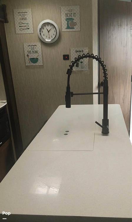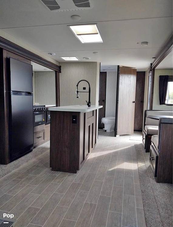 Step inside and be greeted by a thoughtfully designed living area that maximizes space without compromising on comfort. The modern kitchen is equipped with all the essentials, including a refrigerator, stove, and microwave, allowing you to prepare delicious meals on the go. The cozy seating area is perfect for unwinding after a day of adventure, while the entertainment system ensures you can enjoy your favorite shows and movies wherever you are. The sleeping quarters are designed to provide a restful night's sleep, with plush bedding and ample storage to keep your belongings organized.