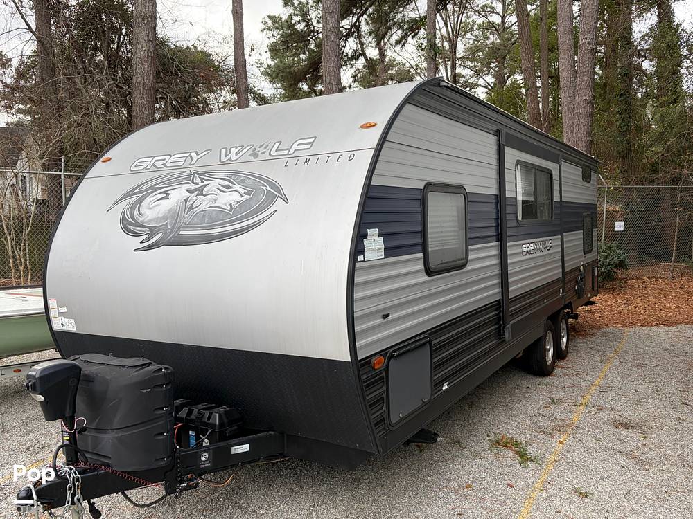 Introducing the 2021 Forest River Grey Wolf 23DBH Travel Trailer, a premier choice for families and adventurers seeking comfort and convenience on the road. This meticulously crafted travel trailer offers a perfect blend of modern amenities and robust design, ensuring a memorable camping experience. With a length of 24 feet, this trailer is designed to provide ample space while maintaining ease of maneuverability, making it ideal for both seasoned travelers and those new to the RV lifestyle.