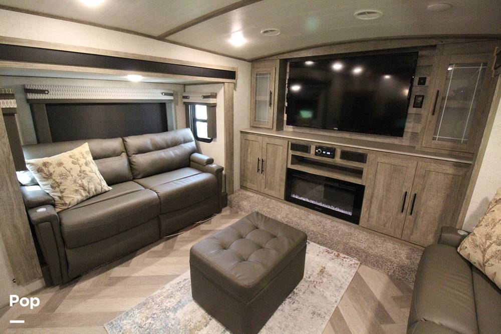 The sleeping arrangements are thoughtfully designed to ensure a restful night's sleep. The master bedroom features a comfortable queen-sized bed, while the additional sleeping areas include convertible sofas and a loft space, perfect for kids or extra guests. With its stylish interior, top-notch amenities, and spacious layout, the 2021 Forest River Heritage Glen Elite 36FL Fifth Wheel is your ticket to unforgettable adventures on the road. Don't miss the chance to own this exceptional RV and start making memories today!