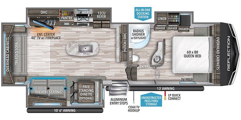 Outside, the Grand Design Reflection 303RLS boasts a sleek and stylish exterior, complete with an awning for shaded outdoor relaxation. With its durable construction and thoughtful design, this RV is built to handle all your travel needs. Whether you're exploring national parks or setting up camp by the beach, this Fifth Wheel is ready to take you there in style and comfort. Don't miss out on the opportunity to own this exceptional RV and start making memories that will last a lifetime!