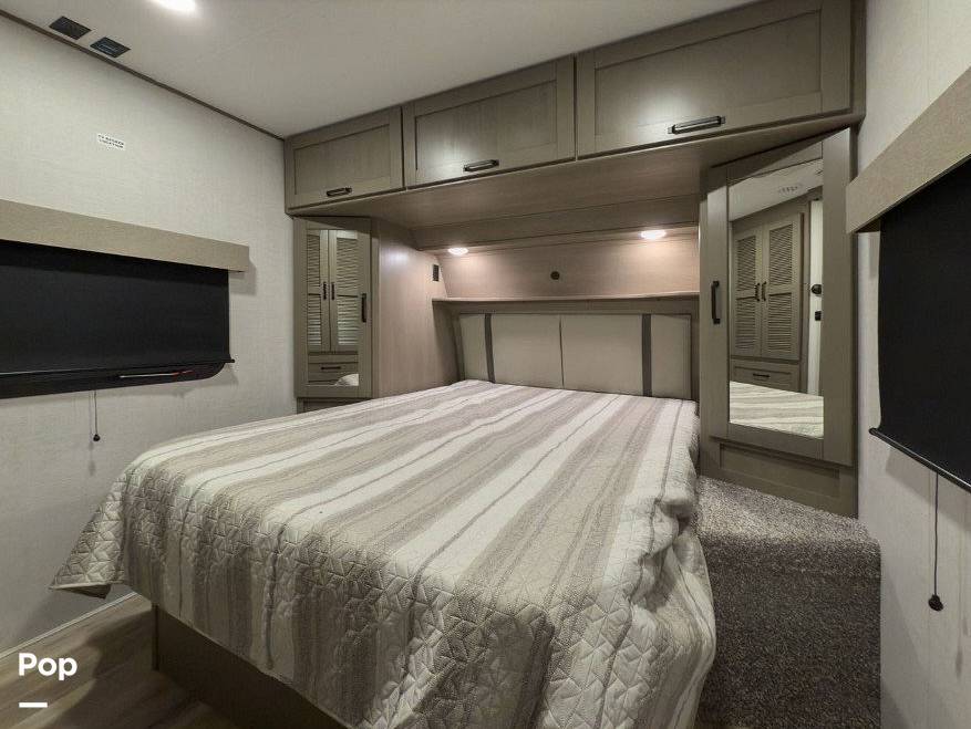 Step inside to discover a meticulously crafted interior that exudes elegance and practicality. The spacious living area is adorned with high-quality furnishings and state-of-the-art amenities, ensuring a home-like atmosphere wherever your travels take you. The fully equipped kitchen features premium appliances, ample storage, and a generous countertop space, making meal preparation a delight. The sleeping quarters are thoughtfully designed to provide restful nights, with plush bedding and ample storage solutions to accommodate all your travel essentials.