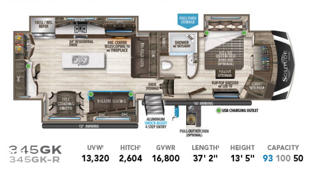 Beyond its elegant interior, the Solitude 345GK boasts a robust construction and superior insulation, ensuring a comfortable environment in any season. With ample storage space, both inside and out, you can bring along all your essentials and more. Whether you're exploring the great outdoors or enjoying a quiet evening indoors, this Fifth Wheel offers the perfect blend of style, functionality, and convenience. Don't miss the opportunity to own this exceptional RV and elevate your travel experiences to new heights.