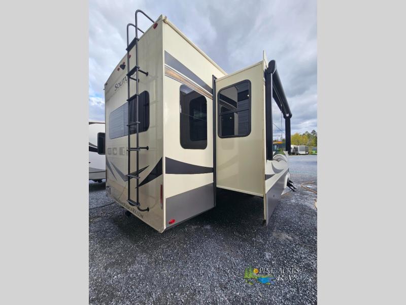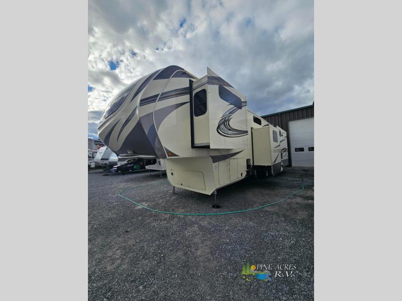 The Solitude 377MBS features four expansive slide-outs, significantly enhancing the living space and providing a roomy interior that can comfortably accommodate up to eight people. The intelligent design includes a master bedroom, a loft, and a versatile mid-bunk room, making it ideal for families or groups seeking privacy and comfort. The interior is elegantly appointed with high-quality finishes, including plush seating, a fully equipped kitchen with modern appliances, and a spacious bathroom, ensuring that you have all the comforts of home while on the road.