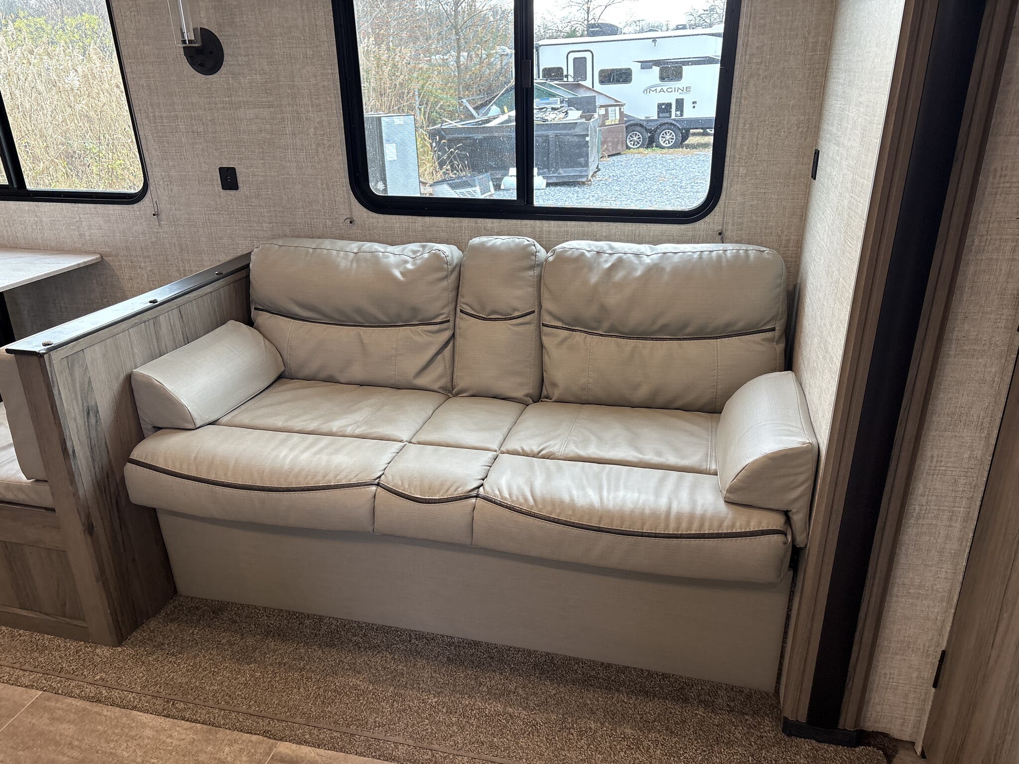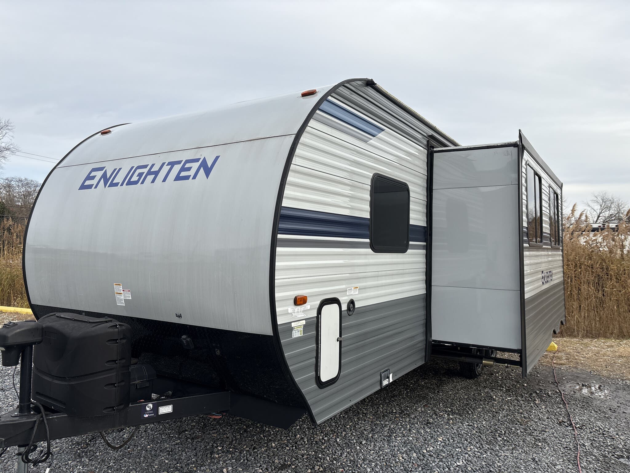 Introducing the 2021 Gulf Stream Enlighten 27BHS Travel Trailer, a perfect blend of comfort and functionality for your next adventure. This meticulously designed RV offers a spacious and inviting interior, thanks to its single slide-out feature, providing ample room for relaxation and entertainment. With a length of 24 feet, this travel trailer is compact enough for easy maneuverability while still offering generous living space.