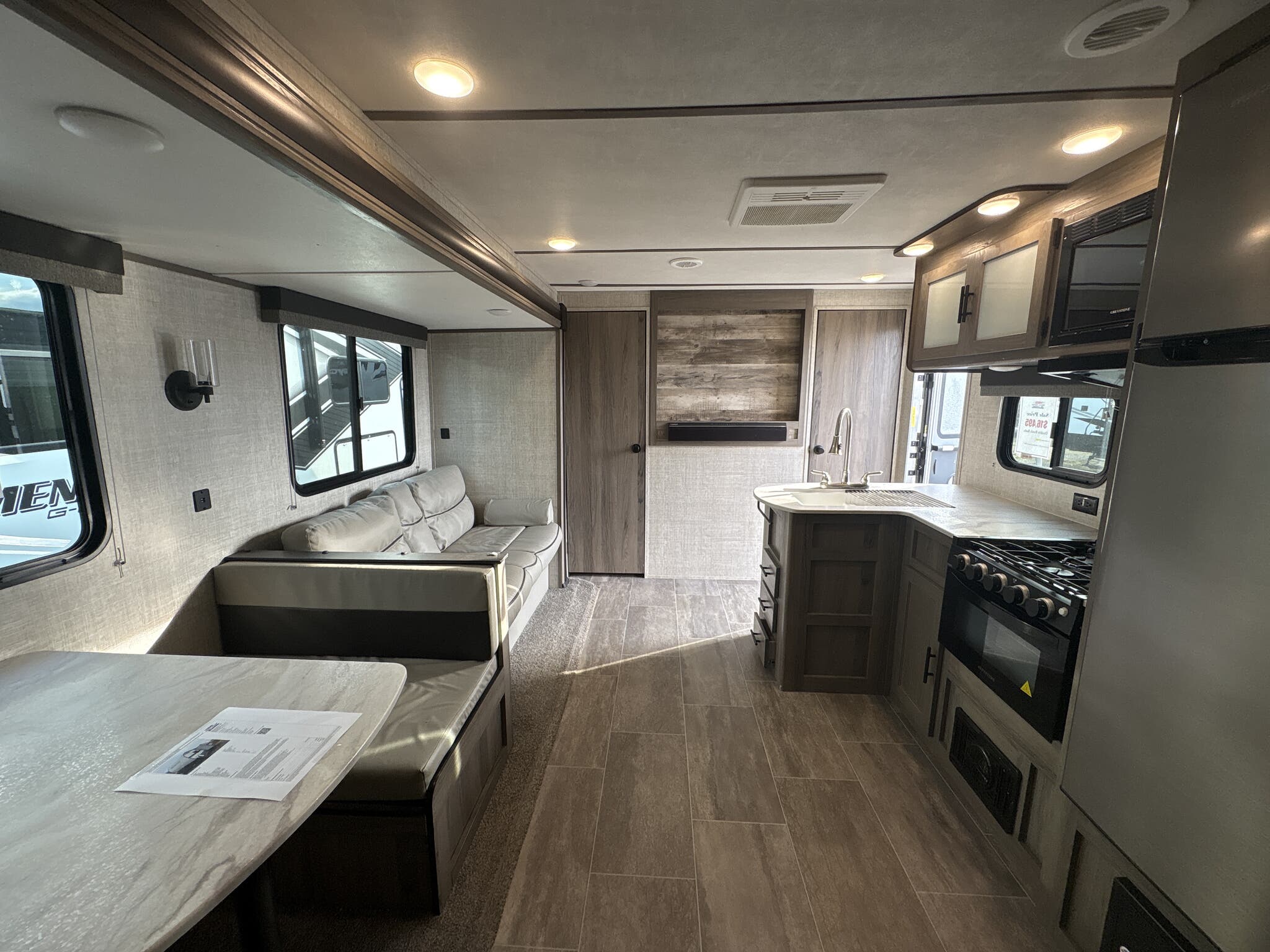 Designed to accommodate up to eight people, the Gulf Stream Enlighten 27BHS is ideal for family trips or group outings. The intelligently designed floor plan includes a cozy sleeping arrangement with a queen bed, bunk beds, and convertible seating areas, ensuring a restful night's sleep for everyone. The interior is thoughtfully appointed with modern amenities, including a fully equipped kitchen with a refrigerator, microwave, and stove, allowing you to prepare meals with ease.
