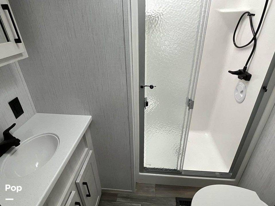 Step inside to find a thoughtfully crafted living space that combines style and functionality. The interior boasts a modern kitchen equipped with top-of-the-line appliances, including a refrigerator, microwave, and stove, allowing you to prepare meals with ease. The cozy living area features plush seating and a state-of-the-art entertainment system, perfect for unwinding after a day of exploration. The sleeping quarters are designed for maximum comfort, with a master bedroom and additional sleeping areas that ensure everyone has their own space to relax.