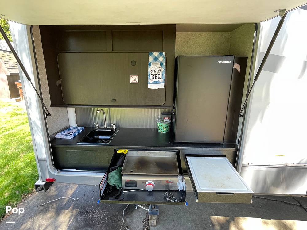 Step inside and be greeted by a thoughtfully designed interior that maximizes space and convenience. The Open Range 338BHS features a modern kitchen equipped with all the essentials, including a refrigerator, stove, and microwave, ensuring you can whip up delicious meals on the go. The living area is perfect for relaxation, with ample seating and entertainment options to keep everyone engaged. The private master bedroom offers a peaceful retreat, while the bunkhouse provides additional sleeping quarters, making it perfect for families or groups.