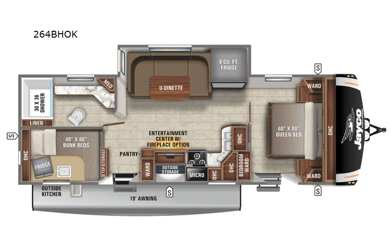 Beyond its impressive interior, the Jayco Eagle HT 264BHOK is built for outdoor enjoyment. The exterior kitchen allows you to cook and dine under the stars, while the awning provides shade and shelter, creating the perfect outdoor living space. With its robust construction and reliable performance, this travel trailer is ready to take you on countless adventures. Don’t miss the opportunity to own a travel trailer that combines luxury, practicality, and adventure in one exceptional package. Embrace the freedom of the open road with the 2021 Jayco Eagle HT 264BHOK.