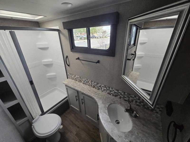 Inside, the Jayco Eagle HT 264BHOK is a marvel of modern design, capable of comfortably sleeping up to eight people. Whether you're planning a weekend getaway or an extended road trip, this RV ensures everyone has a cozy place to rest. The intelligently designed floor plan includes a master bedroom, bunk beds, and convertible sleeping areas, providing flexibility and comfort for families of all sizes. The high-quality finishes and thoughtful amenities, such as a fully equipped kitchen and a spacious bathroom, make it feel like a home away from home.